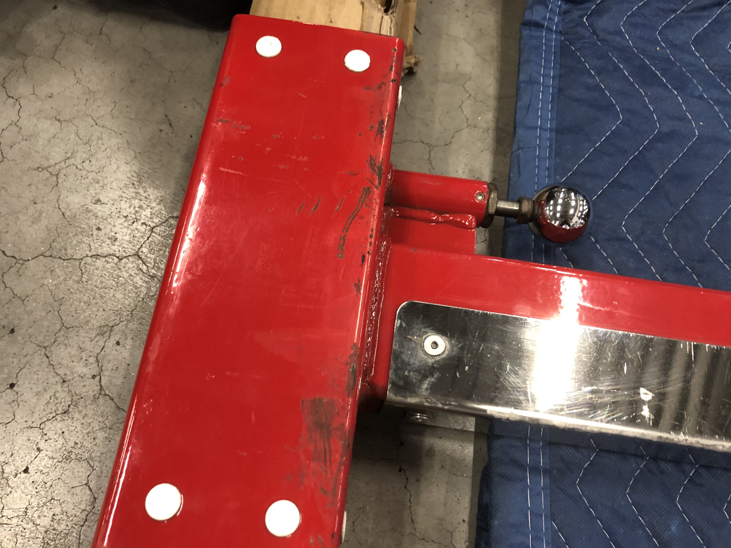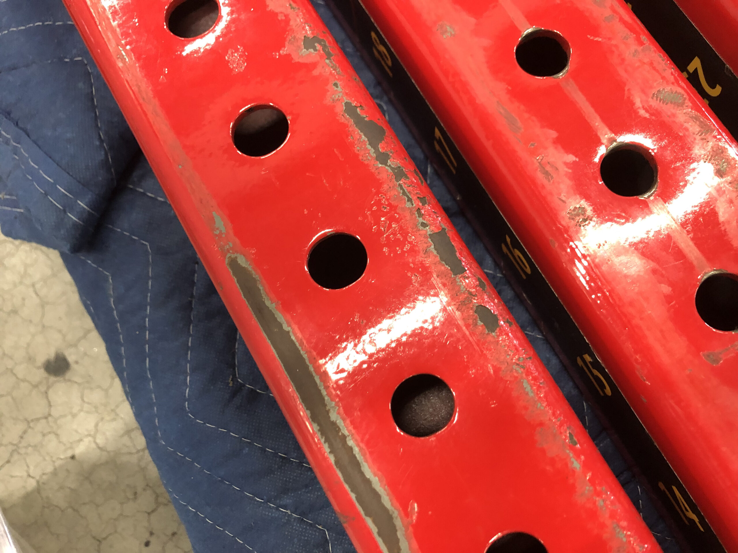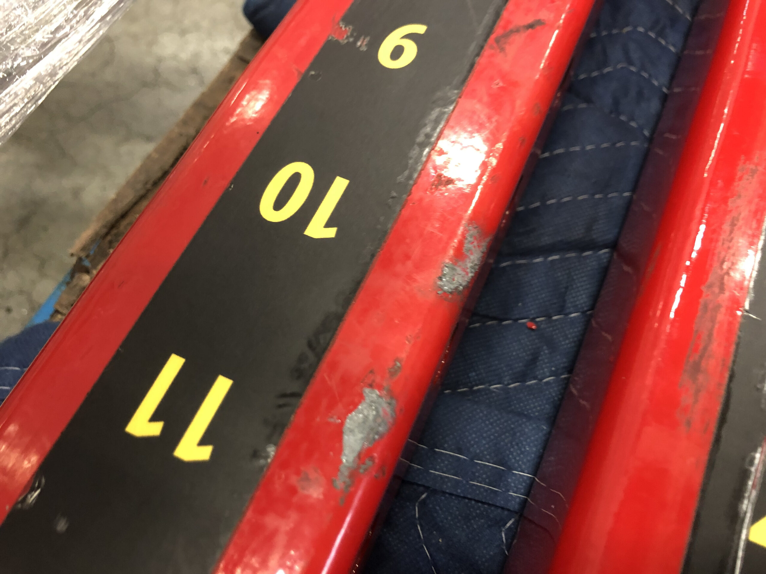 タフスタッフのパワーラックのセーフティーラックはポップピンを引いて調節できるため他のパワーラックに比べて調節がしやすいです。